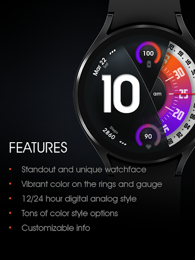 UsA Florencia Neo stands out with its versatile customization options and practical features Here are five notable characteristics 1 Hybrid Time Display - Combines digital hours with analog minutes and seconds offering a modern twist on traditional watch design 2 Customization Options - Users can personalize second hand styles line index indicators and choose from multiple color combinations for a unique appearance 3 Health and Device Monitoring - Includes battery and heart rate indicators with visual gauges providing real-time information about your device and body 4 Custom Shortcuts and Info - Offers two custom info complications and two app shortcuts allowing quick access to frequently used functions or data 5 Special AOD Design - Features an optimized Always On Display mode that balances visibility and power consumption ensuring essential information remains accessible even when the watch is idle