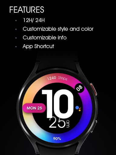 UsA Minimalist Digital offers a range of impressive features that enhance the smartwatch experience. Here are five notable characteristics 1 Colorful Minimalist Design - The app boasts a standout colorful digital interface that adds a touch of personality to your smartwatch while maintaining a clean and minimalist aesthetic. 2 Customizable Information Display - Users can personalize their watch face with two custom information slots allowing them to display the data most relevant to their needs. 3 Custom App Shortcut - This feature enables quick access to frequently used apps directly from the watch face streamlining daily interactions. 4 Automatic Time Sync - The watch face automatically synchronizes with the phone's time settings supporting both 12 and 24hour formats based on user preference. 5 AlwaysOn Display Mode - With AOD functionality users can view essential information even when the watch screen is in a lowpower state ensuring constant access to critical data without compromising battery life.