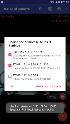 USB Dual Camera Pro stands out with its extensive range of features Here are five notable ones 1 Simultaneous Dual Camera Support - The app enables users to connect two USB cameras or video capture cards at the same time allowing for versatile video recording setups including side-by-side 3D video creation 2 Advanced Streaming Capabilities - With built-in RTSP and HTTP server functions users can turn their phones into wireless IP cameras for security monitoring while supporting bi-directional audio 3 Professional Broadcasting Tools - The app can stream video and audio to RTMP or SRT live media servers supporting secure protocols and enabling multi-server broadcasting which is ideal for network live broadcasts 4 Video Mixing and Audio Overlay - Users can mix USB audio with built-in microphones or system audio and overlay internal camera footage onto external camera video providing creative flexibility 5 Practical Recording Features - The app includes loop recording motion detection-triggered recording and automatic FTP uploads with email notifications ensuring reliable and automated video documentation