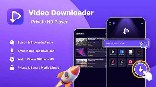 Video Downloader - Private HD Player is an all-in-one application that allows users to search for download and enjoy HD videos and various file formats directly within the app. This powerful tool offers a built-in search feature enabling users to find videos or files without leaving the app. With one-tap download functionality users can save HD videos MP3s and other file formats quickly and easily. The app supports offline playback allowing users to watch videos or listen to audio files anytime anywhere without an internet connection. Video Downloader - Private HD Player also prioritizes user privacy and security by offering private playback options password protection and ensuring files remain on the user's device. Available on mobile platforms this app is perfect for those who want a secure and convenient way to manage their media library.