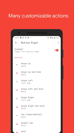 Vivid Navigation Gestures stands out with its comprehensive set of features designed to enhance user interaction with Android devices. Here are five notable features 1. Multiple Gesture Triggers - The app supports gesture triggers from various screen locations including bottom left center right and edge areas providing flexible control options for users. 2. Extensive Action Library - With over 20 available actions such as launching apps toggling settings and media controls users can customize their navigation experience extensively. 3. Fluid Visual Effects - During gesture operations the app displays beautiful animations creating a smooth and visually appealing user experience. 4. Hide Navigation Bar - Users can completely hide the stock navigation bar using ADB or root access allowing for a full-screen immersive interface. 5. Accessibility Service Integration - The app utilizes Android's accessibility services to execute essential navigation functions programmatically without collecting any personal data ensuring both functionality and privacy.
