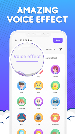 Voice Changer by Sound Effects stands out with its extensive set of features designed to maximize user creativity and enjoyment. Here are five notable features that make this app special: 1. MORE THAN 30 VOICE GENERATOR EFFECTS - Users can access a wide array of voice transformation options including gender swaps, alien voices, and anime character voices, ensuring conversations or content creation are never dull. 2. OVER 30 SOUND EFFECTS - In addition to voice changes, the app includes numerous ambient sounds such as rain, animal noises, and crowd reactions, which help bring videos and audios to life. 3. VIDEO VOICE CHANGER - This feature allows detailed customization of voice clips with controls for speed, volume, pitch, and distortion, along with basic editing functions like trimming and adding simple effects. 4. EASY TO USE INTERFACE - The app simplifies audio manipulation with straightforward tools for recording, cutting, and editing audio files, alongside professional file management capabilities. 5. HIGH APPLICABILITY OF FUNNY VOICE CHANGER - Beyond mere entertainment, modified sounds can be utilized as ringtones or notification sounds, offering practical applications beyond just playful interactions.