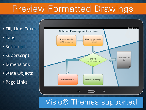 VSD Viewer for Visio Drawings presents several advantages for business professionals. Its support for multiple Visio file formats makes it highly versatile while the advanced document navigation and complex object rendering ensure that users can interact with their drawings in detail. The ability to manage layers and preview object data adds another layer of functionality that can be critical for certain projects. However there are some drawbacks to consider. The app may take time to process large documents or those with numerous images which could disrupt workflow during critical moments. Additionally rendering built-in metafiles requires an internet connection which might not always be convenient. Despite these limitations VSD Viewer remains a valuable resource for anyone needing to access Visio files on an Android device offering a level of detail and interaction that is hard to find elsewhere.