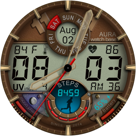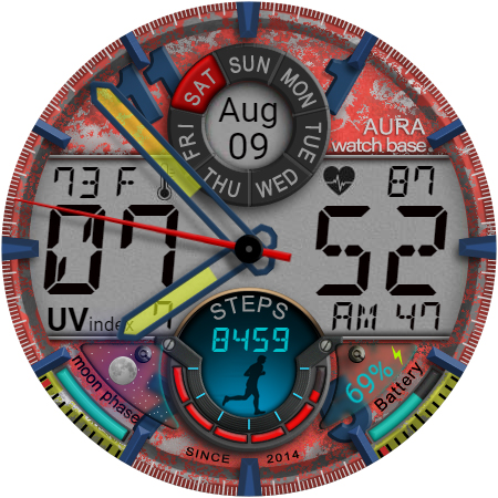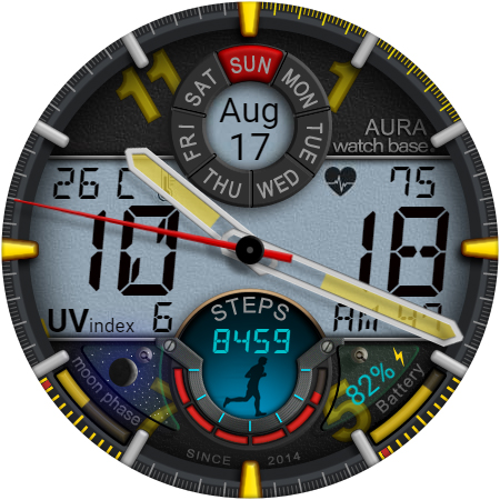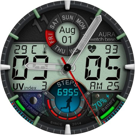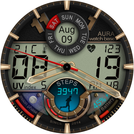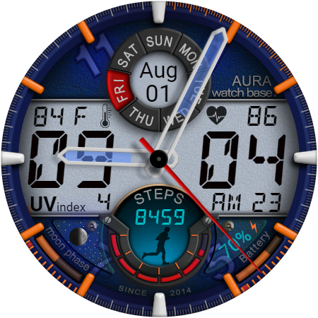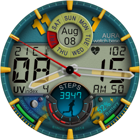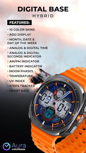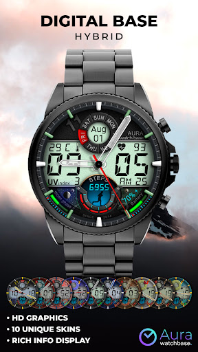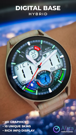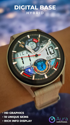 WB DIGITAL BASE Hybrid stands out with its diverse range of features Here are five notable characteristics that make this watch face exceptional 1 Customization Options - With 10 color skins and adjustable settings users can personalize their watch face to match their unique style and preferences 2 Comprehensive Data Display - The app provides essential information including analog and digital time battery status steps heart rate temperature and more all accessible at a glance 3 Always-On Display - Featuring AOD technology the watch face ensures important details remain visible even when the screen is inactive 4 Environmental Indicators - Including moon phases UV index and weather updates these features help users stay informed about their surroundings 5 Seamless Integration - Automatic synchronization with device settings allows for effortless unit adjustments and real-time data updates enhancing user convenience