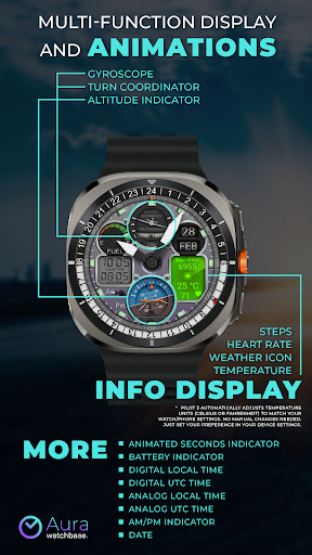 WB PILOT 3 Animated Watch Face offers a variety of features that enhance the wearable experience. Here are five notable ones. 1. Customizable Skins - Users can choose from ten different skins to personalize their watch face according to their preferences. 2. Hybrid Time Display - The app provides both digital and analog time formats catering to different user preferences for time representation. 3. Animated Elements - Unique aviation-themed animations such as the Turn Coordinator and Altitude Indicator create an engaging visual experience. 4. Health and Weather Info - Displays essential information like steps heart rate and weather updates keeping users informed about their health and surroundings. 5. Automatic Temperature Adjustment - The app automatically adapts temperature units based on the user's device settings ensuring consistency without manual intervention.