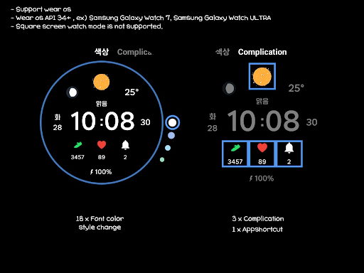 Weather Cupid 3D Gif stands out with its array of distinctive features tailored for Wear OS users. Here are five notable aspects 1 Animated 3D Weather Icons - These lively animations provide an engaging way to visualize current weather conditions directly on your watch face, enhancing both aesthetics and readability. 2 Multifunctional Display - The watch face not only shows time but also includes temperature readings, moon phases, and battery levels, offering comprehensive information at a glance. 3 Customizable Design Elements - With 18 different font color styles available, users can personalize their watch faces to match personal preferences or device themes seamlessly. 4 Automatic Weather Updates - Utilizing Samsung's API, the application fetches updated weather data approximately every half hour, ensuring timely and relevant meteorological insights without manual intervention. 5 Easy Installation Process - By following simple steps via Bluetooth connection between mobile and watch, users can effortlessly install and manage this dynamic watch face, streamlining setup while allowing future removal of the guide app post-installation.
