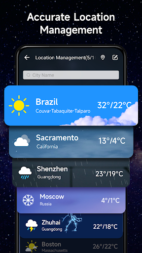 Weather Forecast stands out with its diverse range of features designed to provide both functionality and personalization. Here are five key features that make this app exceptional 1. Comprehensive Weather Data - Get detailed current weather information including temperature wind speed air quality and more alongside 72-hour and 14-day forecasts for better planning. 2. Severe Weather Alerts - Receive timely notifications about extreme weather conditions such as storms hurricanes and floods allowing you to take necessary precautions. 3. Personalized User Experience - Customize your app with various widget styles like metal cute science-fiction and classical designs to match your preferences. 4. Health and Safety Features - Monitor air quality and UV index to plan outdoor activities safely while receiving reminders to carry an umbrella or wear a coat. 5. Global Location Coverage - Access weather data from up to 11 different countries making it perfect for frequent travelers or those managing international operations