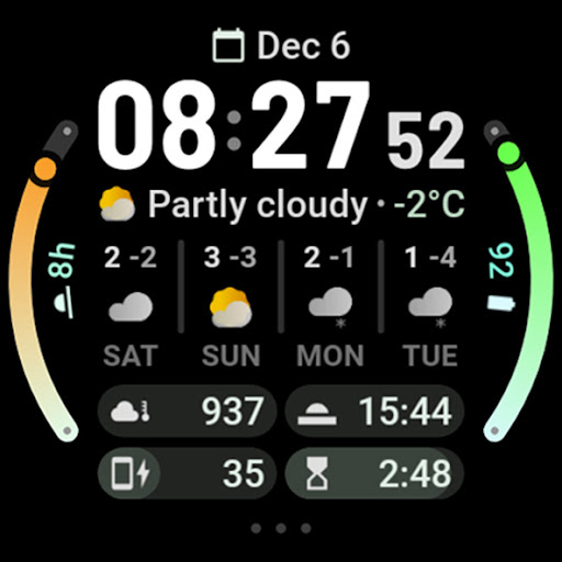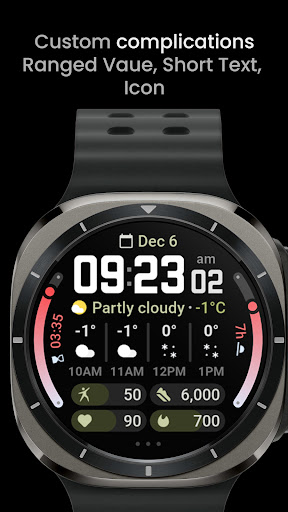 Weather Forecast Watch Face offers a comprehensive set of features that enhance the wearable experience Here are five notable characteristics 1 Interactive Weather Display - Users can view current weather stats and toggle between hourly and daily forecasts by tapping on the display 2 Customization Options - With support for over 60 material themes and arc colors users can personalize the appearance to match their style 3 Complication Support - The watch face includes seven custom complication slots allowing integration with various apps and displaying useful information like ranged values short text and monochromatic icons 4 Multilanguage Support - Catering to a global audience the app supports multiple languages ensuring accessibility for non-English speakers 5 Enhanced Functionality - Additional features include optional digital clock fonts three always-on-display looks and the ability to open alarms or system settings with simple taps