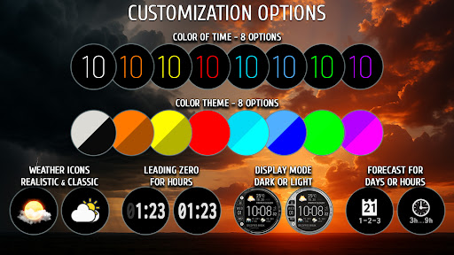 Weather watch face W8.5 provides a feature-packed solution for smartwatch users looking to stay informed about weather and health metrics One of the main advantages is its real-time weather tracking which includes detailed forecasts and essential metrics like UV index and precipitation chances The extensive customization options with multiple color themes and display modes allow users to personalize their experience Additionally the integration of health stats and device information creates a comprehensive all-in-one display However there are some limitations to consider The app is only compatible with Wear OS 5+ which may exclude users with older devices Some users might find the abundance of information on the screen overwhelming and the reliance on The Weather Channel means accuracy depends on that service Despite these minor drawbacks Weather watch face W8.5 remains a valuable tool for those seeking an informative and visually appealing smartwatch experience