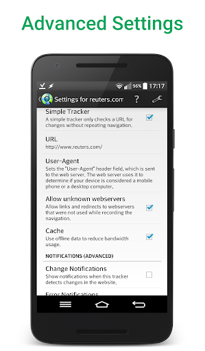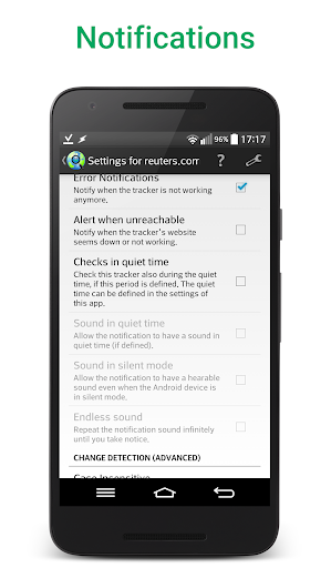 Web Alert Pro stands out with its comprehensive feature set tailored for both regular users and professionals Here are five notable features 1 Advanced Monitoring Options - Users can set custom check frequencies as low as every 5 seconds and apply text or number filters to focus on specific webpage elements 2 Professional Development Tools - The app supports regular expressions CSS jQuery selectors and HTML source code monitoring catering to web developers and automation specialists 3 Intelligent Notification System - Notifications can be customized based on keywords minimum change percentages or website downtime ensuring relevant alerts 4 Automation Integration - With a robust Tasker plugin users can programmatically control various app functions without needing programming knowledge 5 Data Management Features - Users can export website versions as zip archives manage alerts through import export functions and restore accidentally deleted alerts