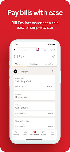 Wells Fargo Mobile is a comprehensive financial management application that allows users to access and manage their banking accounts efficiently. It offers a variety of features including account management through biometric sign-on, fund transfers between accounts, bill payments, and investment tracking. Wells Fargo Mobile can be used on Android devices, making it a versatile tool for personal finance management. One of the best things about Wells Fargo Mobile is its robust security features which include fraud reporting and alert management. This means that users can maintain safe accounts while having instant access to their financial information. And if you're using Wells Fargo Mobile on your smartphone, you can even deposit checks using your device's camera. Overall, Wells Fargo Mobile is an excellent application for managing personal finances. Whether you're looking for account access convenience, secure transactions, or investment tracking, it's a great option.