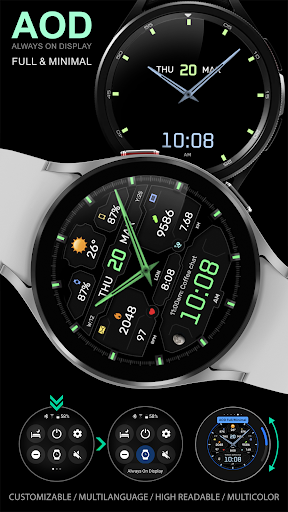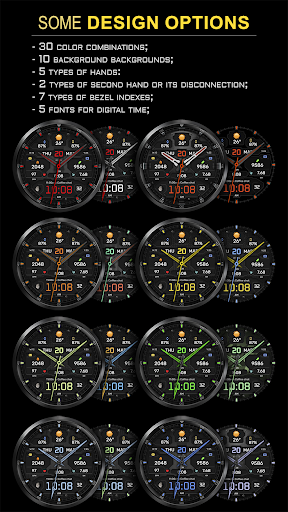 The WFP 134 Hybrid watch face stands out with its extensive range of features and customization options. Here are five notable characteristics that make this application exceptional. 1. Customization Options - With 30 color combinations, 10 background choices, and multiple display settings including 5 types of hands and 7 bezel index styles, users can tailor the watch face to match their personal preferences perfectly. 2. Comprehensive Data Display - The watch face provides detailed information on weather forecasts, moon phases, and health metrics, allowing users to stay informed about their environment and well-being at a glance. 3. High Performance Optimization - Engineered for efficiency, the application boasts high resolution graphics while maintaining low battery consumption, ensuring that your smartwatch remains functional throughout the day. 4. Multifunctional Widgets - Including complications that display phone charge status, calorie counts, and floor tracking, these widgets enhance the practicality of the watch face by providing quick access to essential information. 5. Language Flexibility - Supporting multiple languages and offering weather data in both Fahrenheit and Celsius, this feature ensures that users from different regions can utilize the application comfortably and effectively.