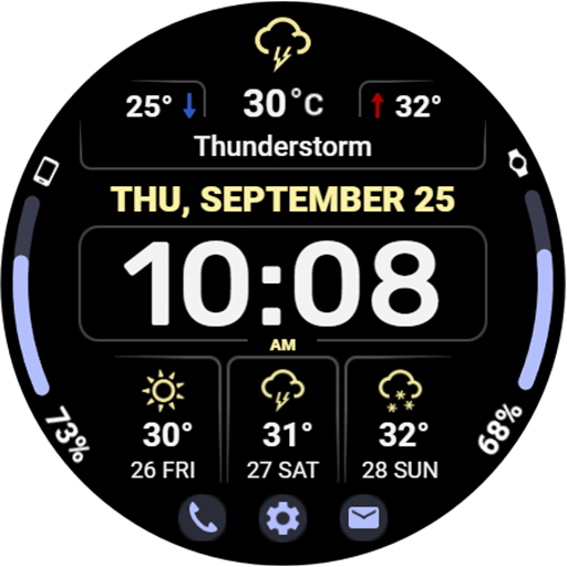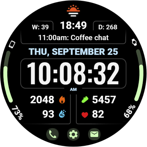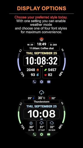 WFP 345 Informer watch face stands out with its impressive array of features designed to enhance user experience. Here are five key highlights: 1. Customization Options - With 30 color choices 4 time font styles and multiple complication zones users can personalize every aspect of the watch face to match their unique style and preferences. 2. Advanced Weather Forecasting - The app provides a detailed three day weather outlook displaying current conditions alongside minimum and maximum temperatures in either Fahrenheit or Celsius ensuring you're always prepared for what's ahead. 3. Health and Activity Tracking - Beyond its aesthetic appeal WFP 345 offers practical tools for monitoring health metrics such as calories burned floors climbed and other essential activity data helping users maintain an active lifestyle. 4. Dual Mode Functionality - Users can switch between two distinct modes one focusing on complications and the other on weather forecasting allowing for flexible usage based on immediate needs while maintaining tap zone accessibility. 5. Optimized Performance - Engineered for efficiency this watch face features high resolution graphics minimal AOD mode and exceptional battery optimization ensuring smooth operation without compromising device performance making it perfect for extended use.