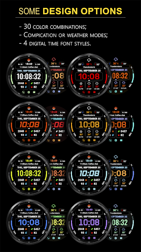 WFP 345 Informer watch face is a highly functional and stylish application designed specifically for Android Wear devices. This sophisticated watch face not only enhances the visual appeal of your smartwatch but also serves as a comprehensive tool for managing daily activities and staying informed. It provides users with detailed weather forecasts up to three days in advance, complete with minimum and maximum temperatures displayed in either Fahrenheit or Celsius. The app goes beyond basic timekeeping by offering extensive health and activity tracking features including calorie monitoring floor counting and more. With 8 customizable complications and 30 color options users can tailor the interface to suit their personal preferences. The watch face supports two distinct modes weather forecasting and complication display ensuring optimal functionality based on user needs. Additionally it boasts high resolution graphics minimal AOD mode and customizable AOD settings for an unparalleled personalized experience. Compatible exclusively with Android Wear devices this application ensures low battery consumption while delivering high performance making it an ideal choice for those seeking both style and substance in their wearable technology.