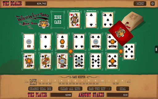Wild West Faro stands out among casino apps with its rich set of features and authentic old west atmosphere. Here are five notable aspects of this application: 1. Classic Faro Gameplay - Experience the traditional card game that was once the most popular gambling choice in Old West saloons. Players can bet on individual cards or multiple combinations while enjoying historically accurate game mechanics. 2. Multiple Betting Options - The app offers diverse wagering possibilities including high card bets, parlay bets, and coppering options where players can bet on cards to win or lose. 3. Advanced Cheating Mechanics - Unique to this app are sophisticated cheating features that allow both dealers and players to manipulate bets, adding an extra layer of strategy and excitement. 4. Beautiful Visual Design - Featuring polished HD graphics and elegant card designs, the app creates an immersive environment that captures the essence of 19th-century gambling establishments. 5. Comprehensive Game Statistics - Players can track their performance through detailed game stats, enhancing the strategic aspect of play and allowing for improved betting decisions.