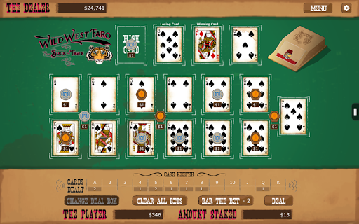 Wild West Faro is a classic casino card game that brings the authentic atmosphere of Old West saloons to modern mobile devices. This application allows users to experience the thrill of Faro, a popular betting game from the 19th century, right on their smartphones or tablets. The game features stunning HD graphics with elegant card designs and realistic sound effects that transport players back to the era of wild west gambling. Players can enjoy various betting options including single card bets, multiple card combinations, and special high card wagers. The app supports both Android and iOS platforms, making it accessible to a wide range of users. With its intuitive touch controls and in-depth game statistics, Wild West Faro offers an immersive gaming experience that combines historical charm with contemporary mobile technology. Whether you're a casual player or a serious gambler, this app provides hours of entertainment through its challenging gameplay and unique features like cheating mechanics and joker cards.