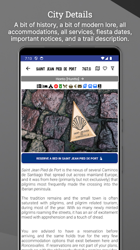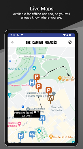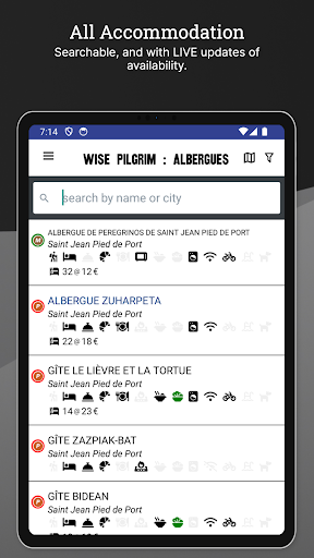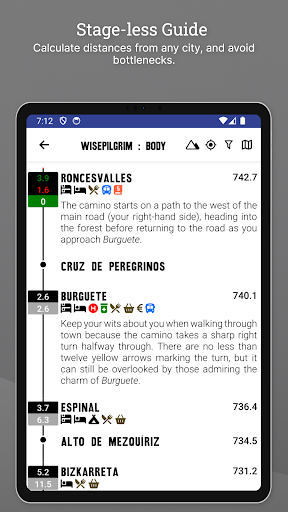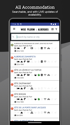 Wise Pilgrim Camino Francu00e9s offers a wide array of features that cater to the needs of modern pilgrims Here are five notable aspects that make this app stand out 1 Accommodation Directory - The app includes a full directory of over 900 lodging options including albergues campsites hotels pensions paradors and rural houses Special attention is given to bookable accommodations allowing users to plan their stays effectively 2 Stageless Guide - Eliminating stage anxiety and guide created bottlenecks this feature allows pilgrims to walk at their own pace without feeling pressured by traditional daily stages 3 Detailed Maps - Both offline and online versions of beautiful topographical maps provide clear views of the terrain ahead ensuring users can navigate confidently regardless of internet access 4 Extensive Photo Library - With over 900 images and growing the app offers visual references of albergues monuments and other points of interest helping pilgrims make informed decisions about their stops 5 Scrollable Elevation Map - This unique feature presents a continuous elevation profile from St Jean Pied de Port to Santiago uninterrupted by page folds giving users a comprehensive understanding of the route's topography
