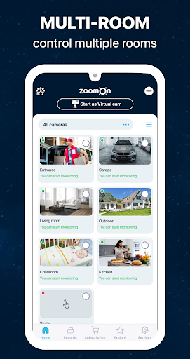 ZoomOn Home Security Camera is a smart application that transforms old smartphones into a comprehensive home security system. It allows users to connect two mobile devices and turn them into an efficient monitoring solution. The app provides live HD video streaming unlimited by distance thanks to support for multiple network types including WiFi 3G 4G 5G and LTE. Users can monitor their homes day or night with features like night mode and lighting. Additional functionalities include motion and noise detection two-way audio communication and smart notifications. ZoomOn ensures security through encrypted communication and offers multi-room monitoring as well as compatibility with ONVIF-compliant cameras. Available on both Android and iOS platforms this app is ideal for those seeking peace of mind when away from home.